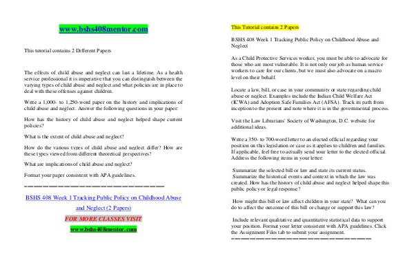 BSHS 408 Week 1 Tracking Public Policy on Childhood Abuse