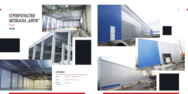 26 СТРОИТЕЛЬСТВО АВТОБАЗЫ „АВТЕК” СКЛАД О ПРОЕКТЕ Даты: Май 2014 г - Декабрь 2014 г Адрес: г. Киев, ул. Пшеничная, 9 Общая площадь: 1 206 кв.м.
