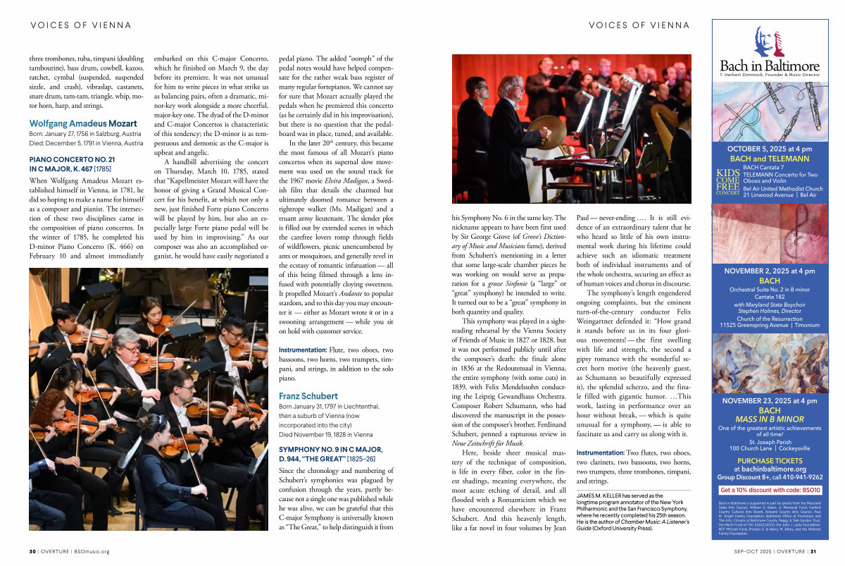 When Wolfgang Amadeus Mozart established himself in Vienna, in 1781, he did so hoping to make a name for himself as a composer and pianist. The intersection of these two disciplines came in the composition of piano concertos. In the winter of 1785, he completed his D-minor Piano Concerto( K. 466) on February 10 and almost immediately embarked on this C-major Concerto, which he finished on March 9, the day before its premiere. It was not unusual for him to write pieces in what strike us as balancing pairs, often a dramatic, minor-key work alongside a more cheerful, major-key one. The dyad of the D-minor and C-major Concertos is characteristic of this tendency; the D-minor is as tempestuous and demonic as the C-major is upbeat and angelic.