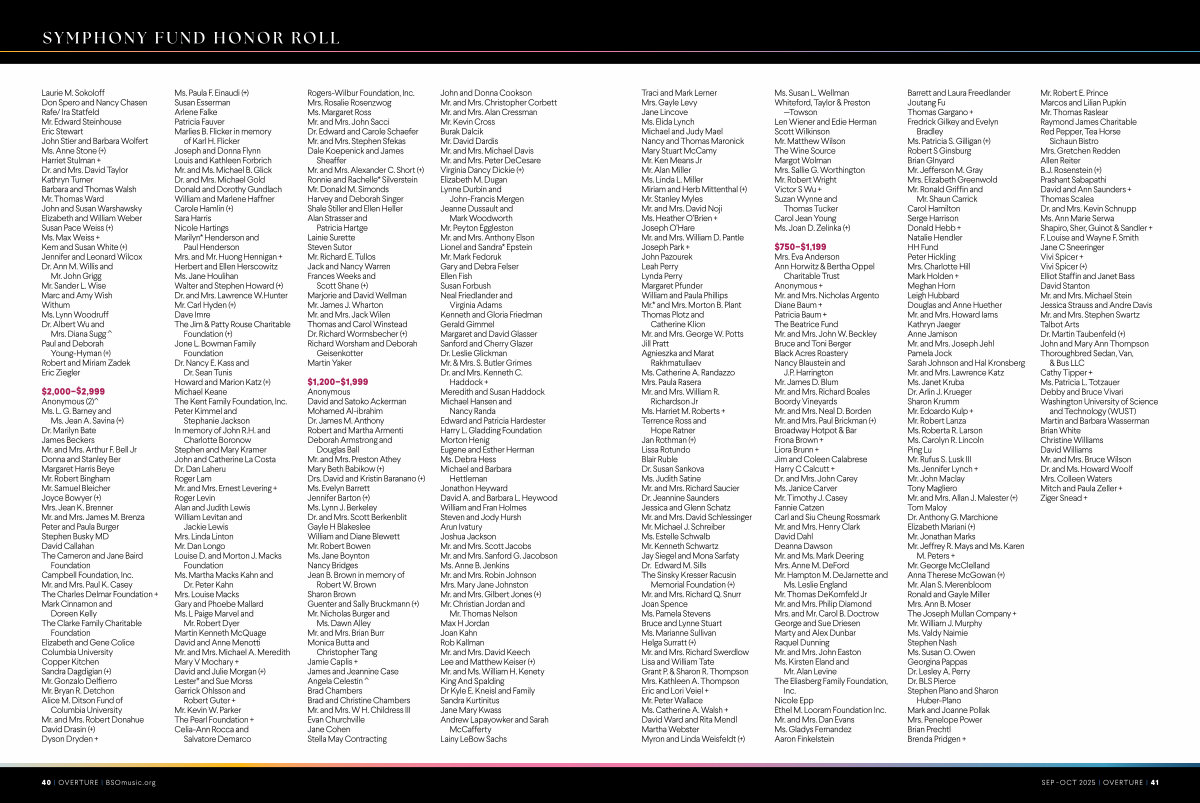 Laurie M. Sokoloff Don Spero and Nancy Chasen Rafe / Ira Statfeld Mr. Edward Steinhouse Eric Stewart John Stier and Barbara Wolfert Ms. Anne Stone(+) Harriet Stulman + Dr. and Mrs. David Taylor Kathryn Turner Barbara and Thomas Walsh Mr. Thomas Ward John and Susan Warshawsky Elizabeth and William Weber Susan Pace Weiss(+) Ms. Max Weiss + Kem and Susan White(+) Jennifer and Leonard Wilcox Dr. Ann M. Willis and