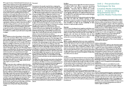 Unit 1 - Pre-production Techniques for the Creative Media Industries