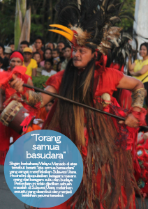 Slogan berbahasa Melayu Manado di atas tersebut berarti "kita semua bersaudara" yang sangat merefleksikan Sulawesi Utara. Provinsi ini dipopulasikan beragam macam orang dari beragam suku dan budaya. Perbedaan ini tidak dijadikan sebuah masalah di Sulawesi Utara, melainkan sesuatu yang disambut dan menjadi kelebihan provinsi tersebut.