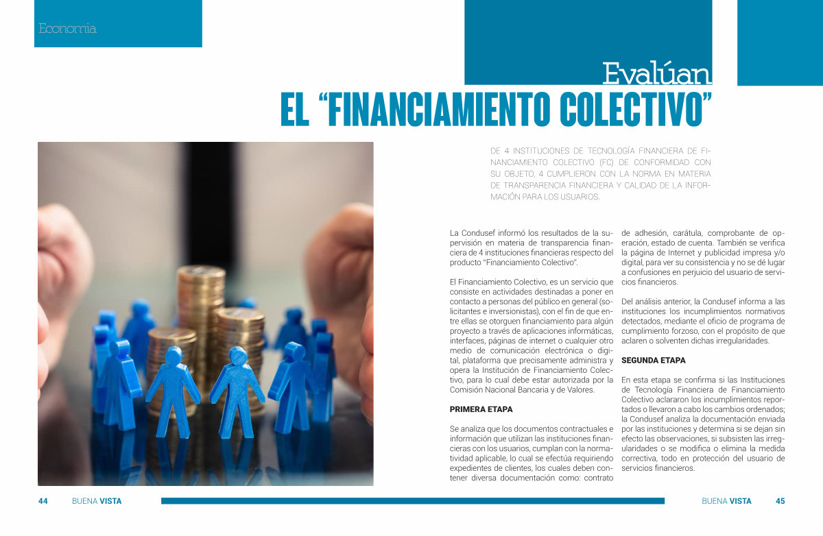 La Condusef informó los resultados de la supervisión en materia de transparencia financiera de 4 instituciones financieras respecto del producto “ Financiamiento Colectivo ”.