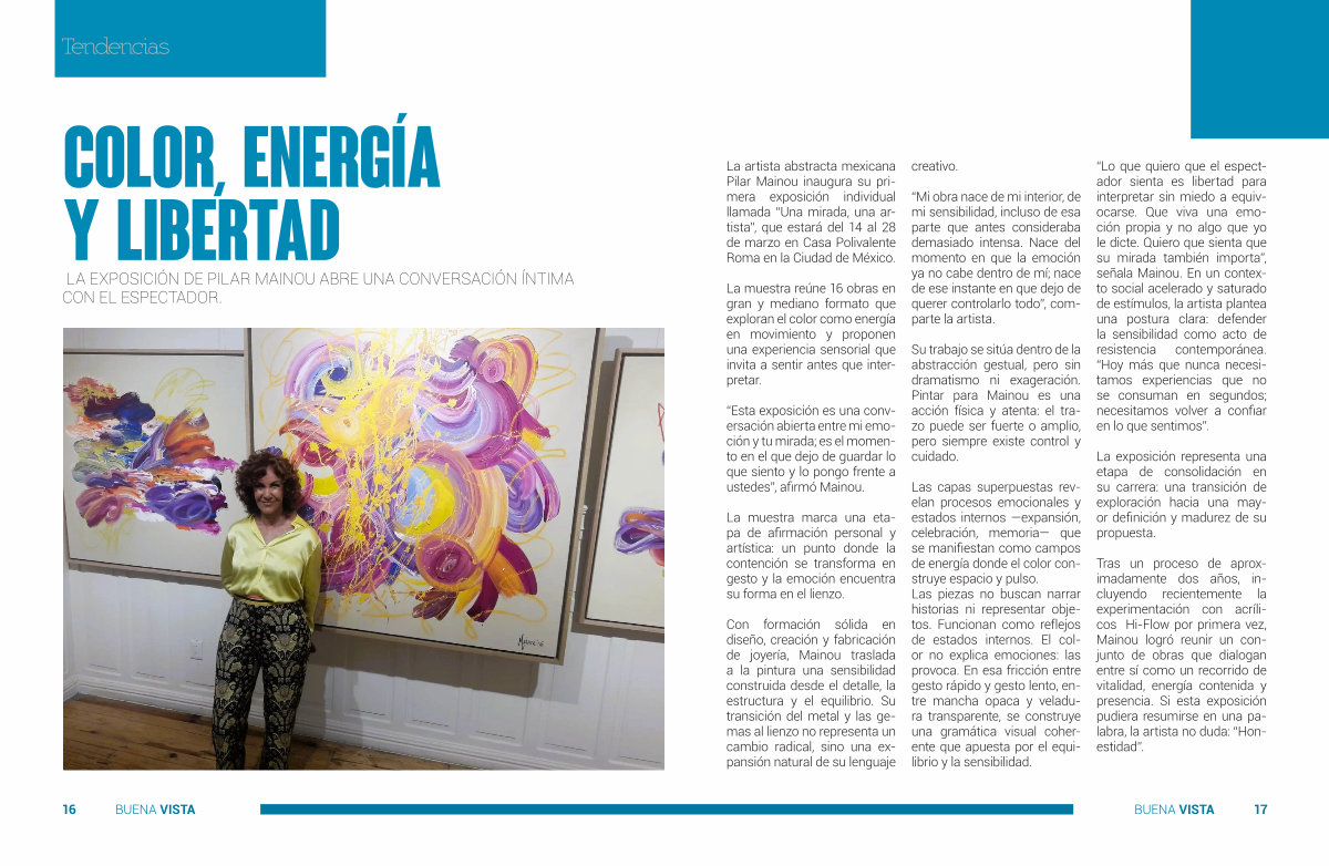 La artista abstracta mexicana Pilar Mainou inaugura su primera exposición individual llamada“ Una mirada, una artista”, que estará del 14 al 28 de marzo en Casa Polivalente Roma en la Ciudad de México.