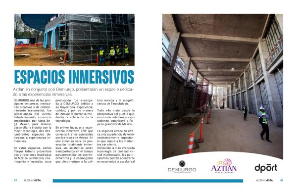 DEMIURGO , una de las principales empresas mexicanas creativas y de entretenimiento transmedial , fue seleccionada por AZPAU Entretenimiento , consorcio encabezado por Mota-Engil México , para diseñar , desarrollar e instalar con la mejor tecnología , dos deslumbrantes espacios dedicados a experiencias inmersivas .