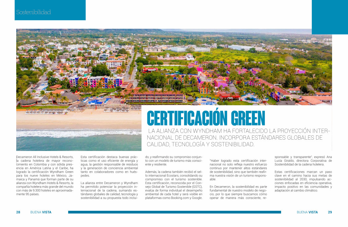 Decameron All Inclusive Hotels & Resorts, la cadena hotelera de mayor reconocimiento en Colombia y con sólida presencia en América Latina y el Caribe, ha logrado la certificación Wyndham Green para los nueve hoteles en México, Jamaica y Panamá que forman parte de su alianza con Wyndham Hotels & Resorts, la compañía hotelera más grande del mundo con más de 9.300 hoteles en aproximadamente 95 países.