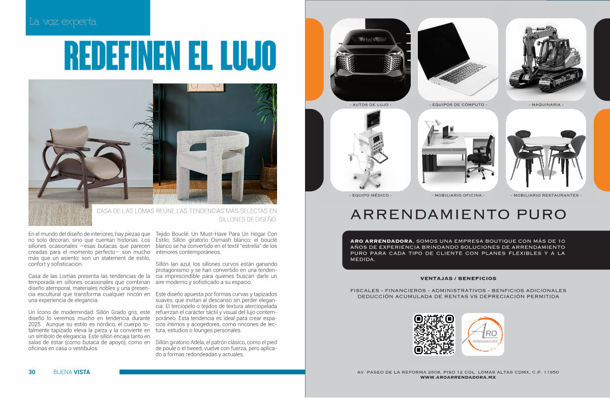 AV. PASEO DE LA REFORMA 2608, PISO 12 COL. LOMAS ALTAS CDMX BUENA, C. P. VISTA 11950 31 WWW. AROARRENDADORA. MX