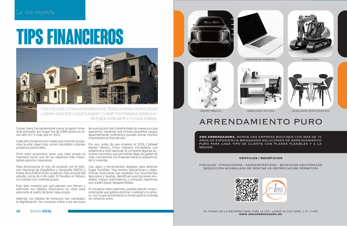 AV. PASEO DE LA REFORMA 2608, PISO 12 COL. LOMAS ALTAS CDMX BUENA, C. P. VISTA 11950 31 WWW. AROARRENDADORA. MX