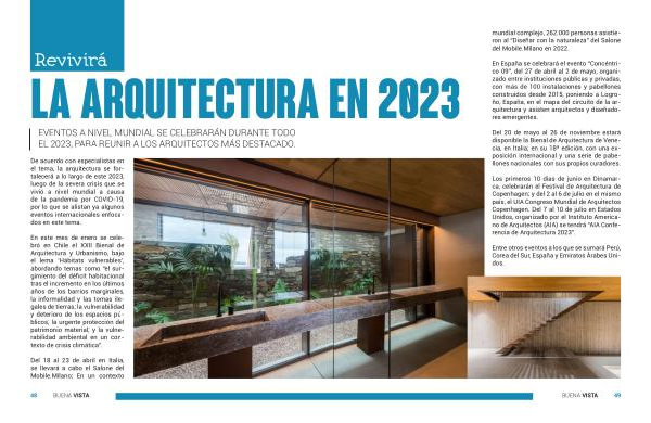 Los primeros 10 días de junio en Dinamarca , celebrarán el Festival de Arquitectura de Copenhagen ; y del 2 al 6 de julio en el mismo país , el UIA Congreso Mundial de Arquitectos Copenhagen . Del 7 al 10 de julio en Estados Unidos , organizado por el Instituto Americano de Arquitectos ( AIA ) se tendrá “ AIA Conferencia de Arquitectura 2023 ”.