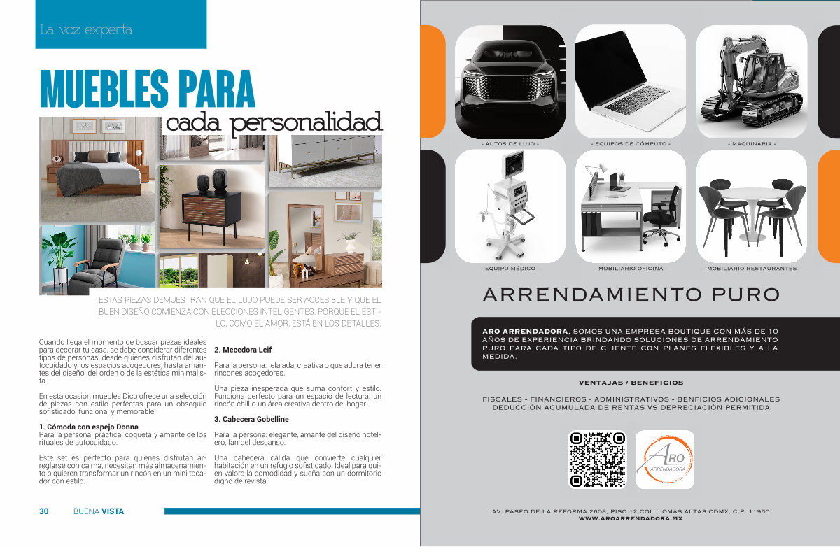 AV. PASEO DE LA REFORMA 2608, PISO 12 COL. LOMAS ALTAS CDMX BUENA, C. P. VISTA 11950 31 WWW. AROARRENDADORA. MX