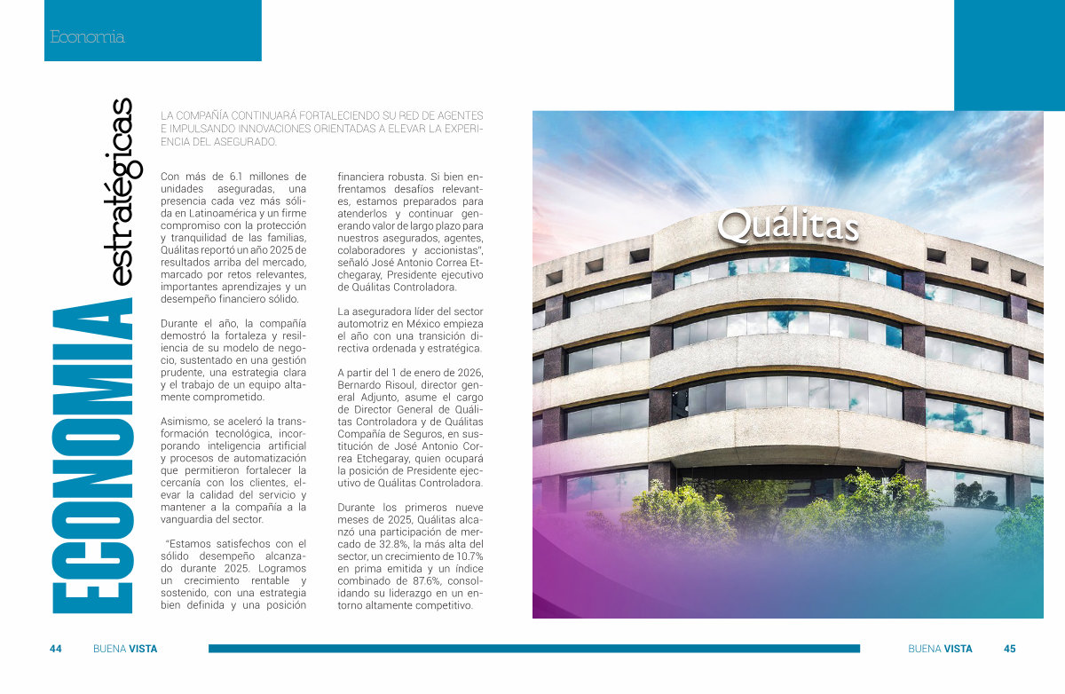 “ Estamos satisfechos con el sólido desempeño alcanzado durante 2025. Logramos un crecimiento rentable y sostenido, con una estrategia bien definida y una posición financiera robusta. Si bien enfrentamos desafíos relevantes, estamos preparados para atenderlos y continuar generando valor de largo plazo para nuestros asegurados, agentes, colaboradores y accionistas”, señaló José Antonio Correa Etchegaray, Presidente ejecutivo de Quálitas Controladora.