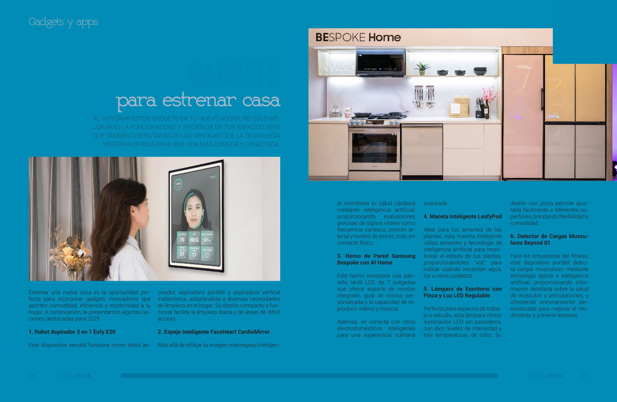 AL INTEGRAR ESTOS GADGETS EN TU NUEVO HOGAR, NO SOLO ME- JORARÁS LA FUNCIONALIDAD Y EFICIENCIA DE TUS ESPACIOS, SINO QUE TAMBIÉN DISFRUTARÁS DE LAS VENTAJAS QUE LA TECNOLOGÍA
