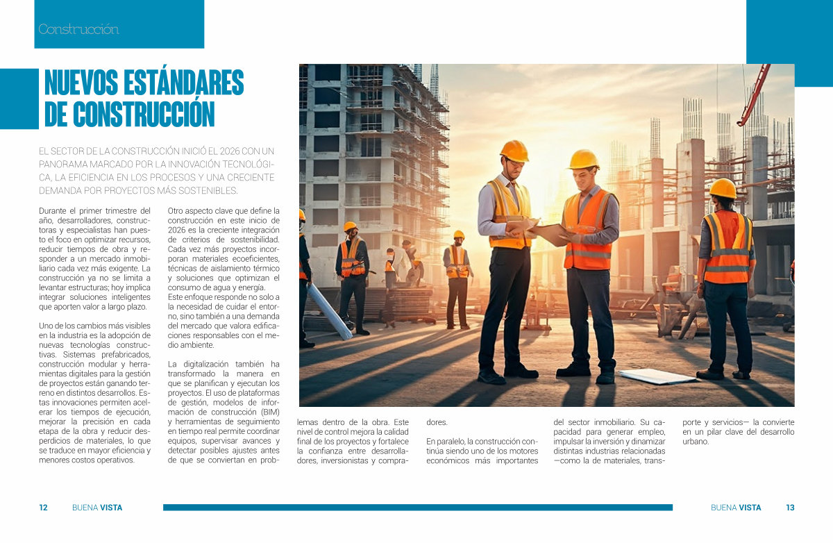 EL SECTOR DE LA CONSTRUCCIÓN INICIÓ EL 2026 CON UN PANORAMA MARCADO POR LA INNOVACIÓN TECNOLÓGI- CA, LA EFICIENCIA EN LOS PROCESOS Y UNA CRECIENTE DEMANDA POR PROYECTOS MÁS SOSTENIBLES.