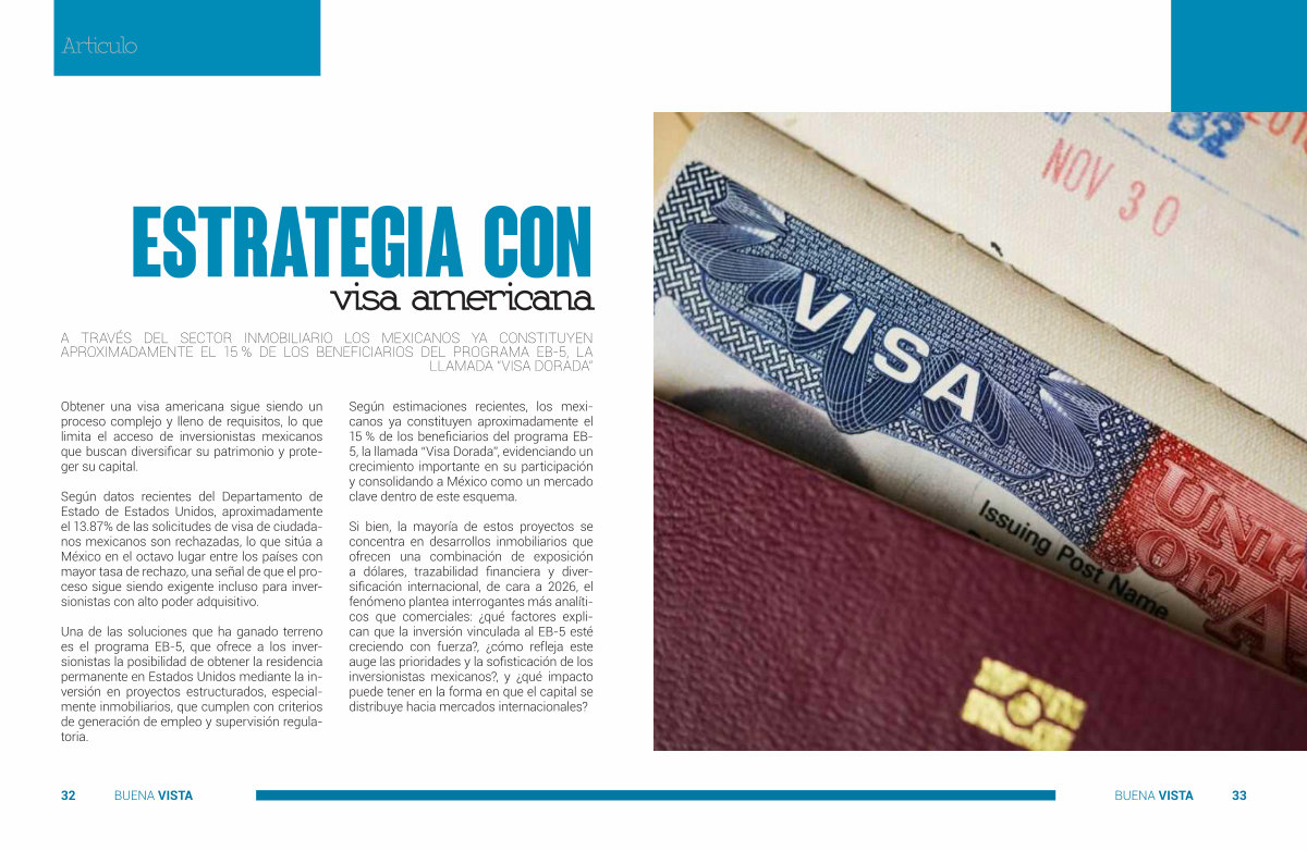 Según estimaciones recientes, los mexicanos ya constituyen aproximadamente el 15 % de los beneficiarios del programa EB- 5, la llamada“ Visa Dorada”, evidenciando un crecimiento importante en su participación y consolidando a México como un mercado clave dentro de este esquema.