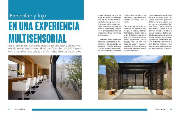 Las experiencias exclusivas del spa en Nobu Hotel Los Cabos combinan prácticas de bienestar y relajación con los mejores productos Natura Bissé . Desde masajes para todo el cuerpo que se enfocan en liberar el estrés e inducir un estado de tranquilidad máxima hasta faciales que se enfocan en restaurar , rejuvenecer y brindar un estado radiante y saludable a piel , Esencia Wellness Spa es una meca para los amantes del bienestar y la belleza .