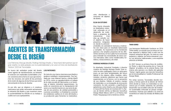 Los Patrones , Elsa ga estudio , Rodrigo Noriega Studio , y Tana Karei demuestran que el gran diseño no está peleado con la sustentabilidad y se unen al Crew de diseñadores ‘ Vértice ’ 2023 de Tecnotabla .