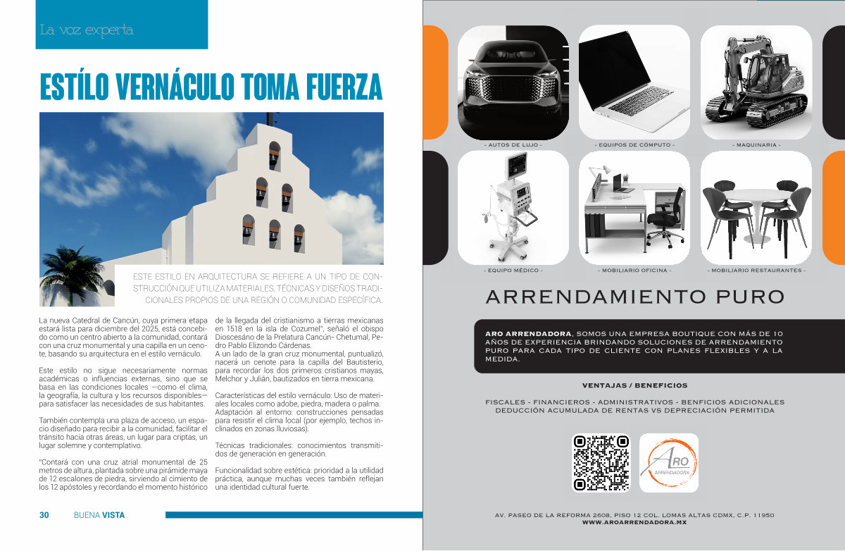 AV. PASEO DE LA REFORMA 2608, PISO 12 COL. LOMAS ALTAS CDMX BUENA, C. P. VISTA 11950 31 WWW. AROARRENDADORA. MX