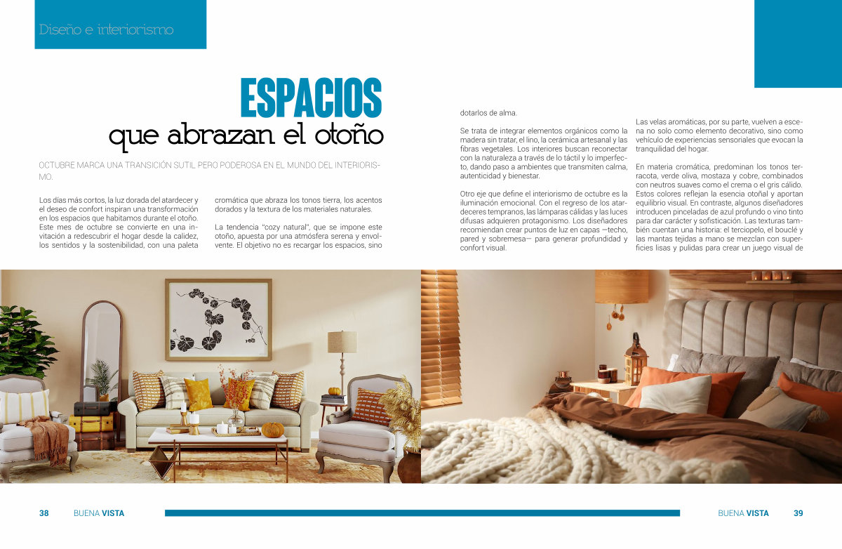 Los días más cortos, la luz dorada del atardecer y el deseo de confort inspiran una transformación en los espacios que habitamos durante el otoño. Este mes de octubre se convierte en una invitación a redescubrir el hogar desde la calidez, los sentidos y la sostenibilidad, con una paleta cromática que abraza los tonos tierra, los acentos dorados y la textura de los materiales naturales.