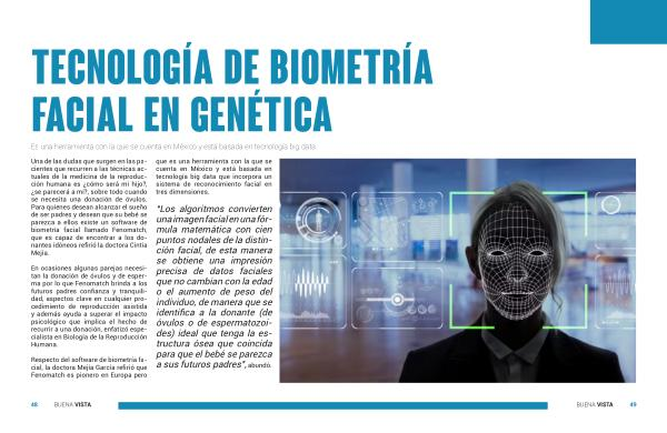 Una de las dudas que surgen en las pacientes que recurren a las técnicas actuales de la medicina de la reproducción humana es ¿ cómo será mi hijo ?, ¿ se parecerá a mí ?, sobre todo cuando se necesita una donación de óvulos . Para quienes desean alcanzar el sueño de ser padres y desean que su bebé se parezca a ellos existe un software de biometría facial llamado Fenomatch , que es capaz de encontrar a los donantes idóneos refirió la doctora Cintia Mejía .