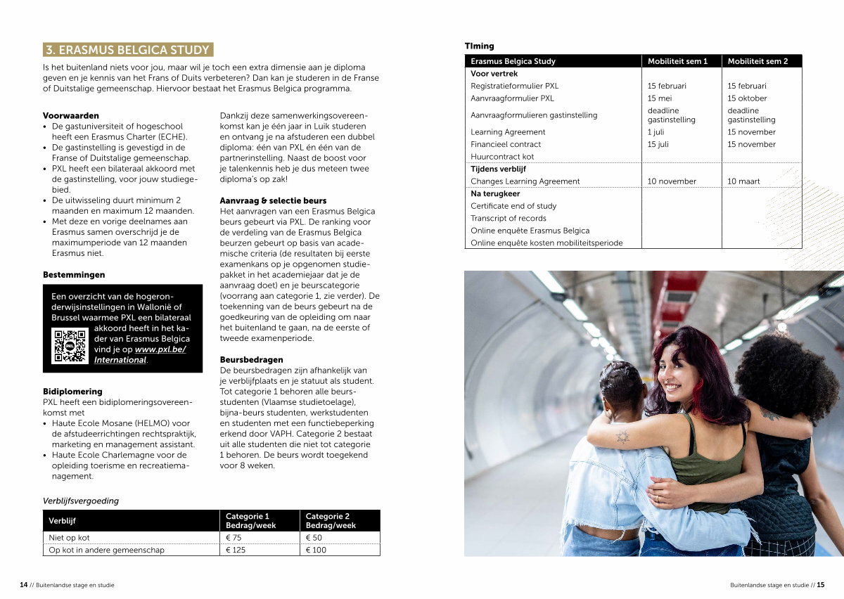 Een overzicht van de hogeronderwijsinstellingen in Wallonië of Brussel waarmee PXL een bilateraal akkoord heeft in het kader van Erasmus Belgica vind je op www. pxl. be / International.