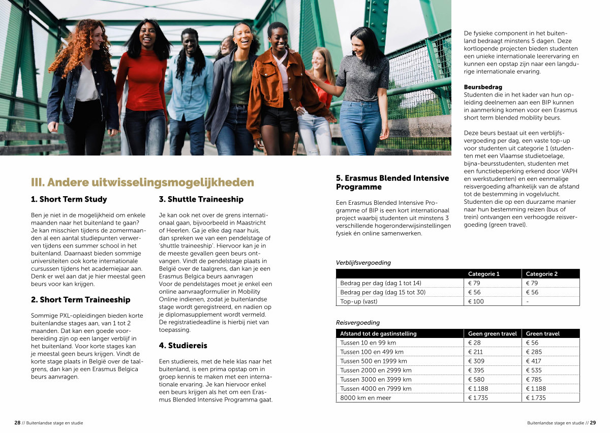 Sommige PXL-opleidingen bieden korte buitenlandse stages aan, van 1 tot 2 maanden. Dat kan een goede voorbereiding zijn op een langer verblijf in het buitenland. Voor korte stages kan je meestal geen beurs krijgen. Vindt de korte stage plaats in België over de taalgrens, dan kan je een Erasmus Belgica beurs aanvragen.