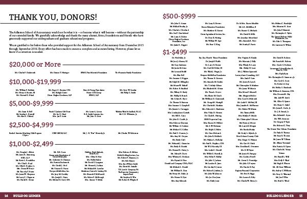 Mr. Cecil M. Felder, III Mr. Wade J. Finger, Jr. Freeport-McMoRan Foundation Mr. Thomas E. Garmon Ms. Amanda M. Gaskin Ms. T. Ashely Gibson Ms. Elizabeth M. Grimes Ms. Tiana L. Grover Ms. Elaine M. Grush Mr. Willliam D. Gutermuth Mr. George M. Harrigill Mr. Charles M. Hawkins Mrs. Deborah A. Henderson Mrs. Vicky D. Henson Dr. Clyde E. Herring HHH Properties Corp. Mrs. Sharon H. Hibbert Mr. A. W. Hickman Mr. Ralph C. Hiden Mr. Gene Holcomb Mr. John R. Holditch Mr. Nathan L. Holladay |