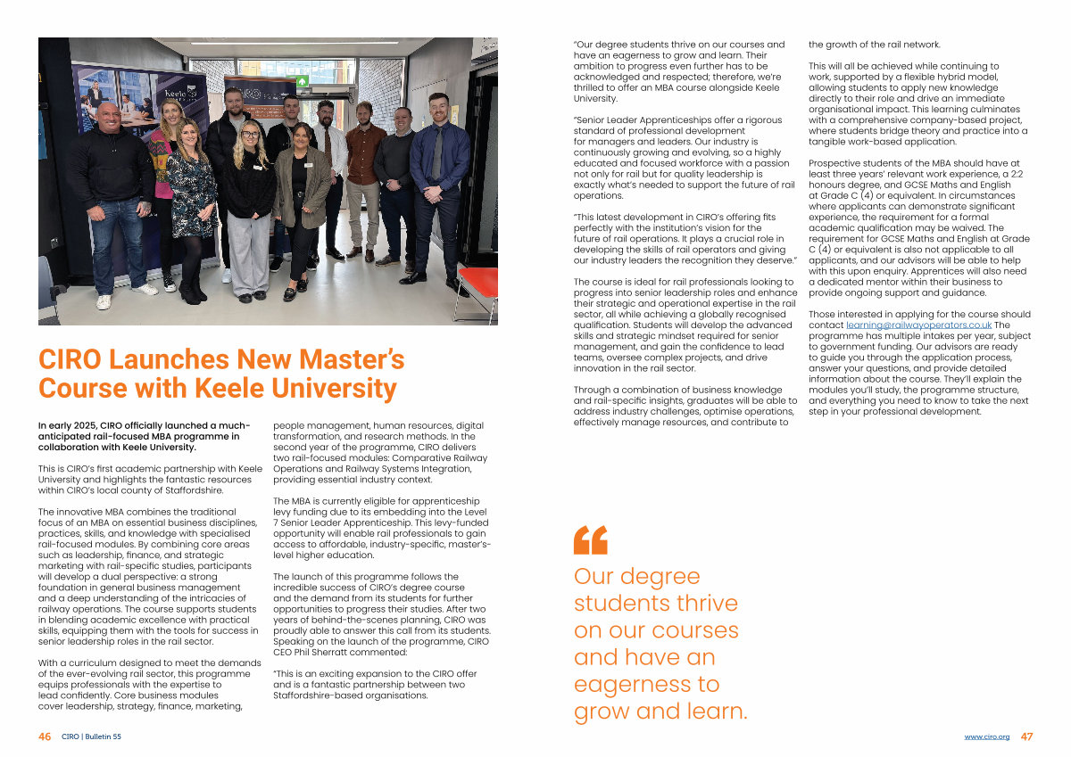 In early 2025, CIRO officially launched a muchanticipated rail-focused MBA programme in collaboration with Keele University.