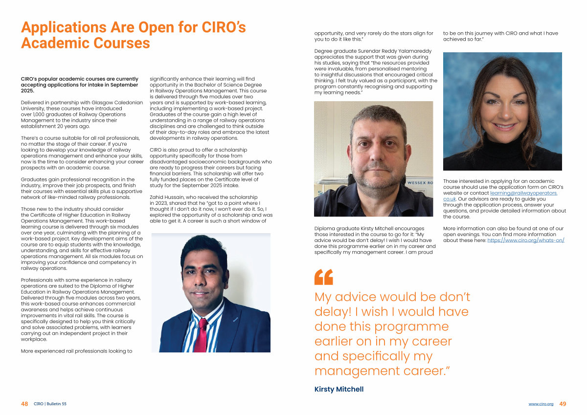 Delivered in partnership with Glasgow Caledonian University, these courses have introduced over 1,000 graduates of Railway Operations Management to the industry since their establishment 20 years ago.