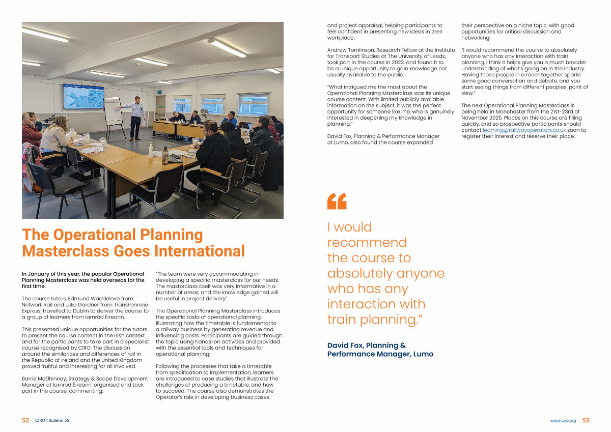 The next Operational Planning Masterclass is being held in Manchester from the 21st-23rd of November 2025. Places on this course are filling quickly, and so prospective participants should contact learning @ railwayoperators. co. uk soon to register their interest and reserve their place.