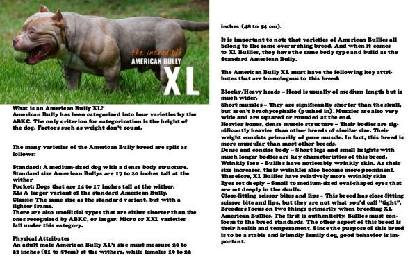 XL: A larger variant of the standard American Bully.