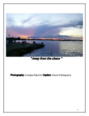 “Awayf r om t hechaos“ Phot ogr aphy : Ani ndy aRakshi tCapt i on: Dewni Pat hegama 52