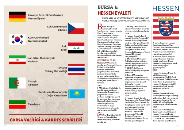 Haziran 2010 tarihinde imzalanan Almanya/Hessen Eyaleti ile İstanbul’da protokol imza töreni gerçekleştirildi. İmzalanan protokol Brüksel’de bir tanıtım toplantısıyla Bursa Vali Yardımcısı başkanlığında bir heyetle kamuoyuna tanıtıldı.