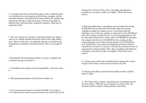 7. You just purchased a parcel of land for $10,000. If you expect a