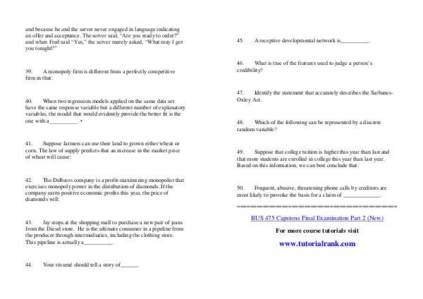 BUS 475 Capstone Final Examination Part 2 (New)