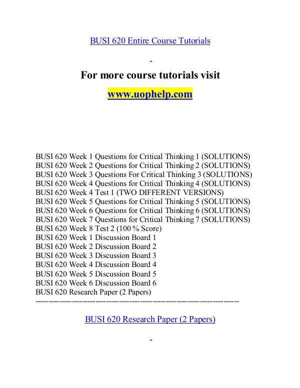 BUSI 620 Entire Course Tutorials