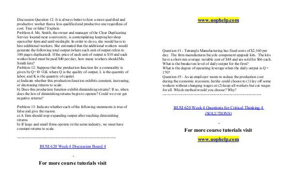 BUSI 620 Week 4 Questions for Critical Thinking 4