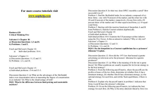 percent share of the market and 10 other equal-sized firms; (c) 10 equal-