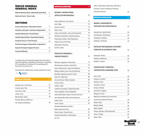 Bocadillos y Aperitivos( snacks) / Snacks Café y Tés / Coffee & Tea Carnes y Mariscos / Meats & Seafood Cervezas / Beers Colados / Glued Confitería y Chocolates / Candy & Chocolates Frutas y Vegetales / Fruits & Vegetables Jaleas, Mermeladas, Pulpas y Conservas de frutas / Jams, Marmalades, Pulps and Fruit Preserves Lácteos / Dairy Licores / Liquors Panadería, Repostería y Cereales / Bakery, Pastries & Cereals Pastas y Granos / Pastas & Grains Productos Alimenticios / Food Products Sal / Salt |