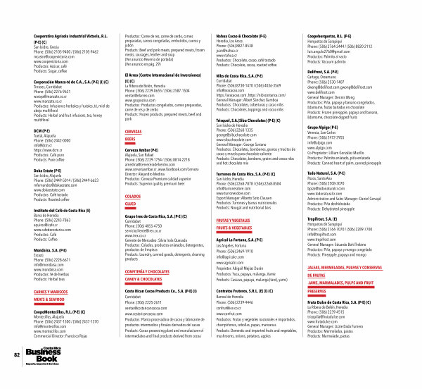 Fruta Dulce de Costa Rica, S. A.( P-E)( C) La Ribera de Belén, Heredia Phone:( 506) 2239-4515 tricopilia @ frutadulce. com www. frutadulce. com General Manager: Lizzie Dada Fumero Productos: Mermeladas, pastas Products: Marmalade, pastas