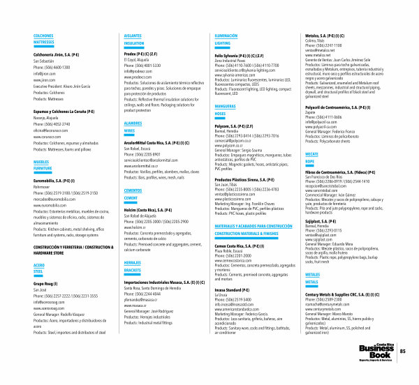 Fibras de Centroamérica, S. A.( Fideca)( P-E) San Francisco de Dos Ríos Phone:( 506) 2286-0919 /( 506) 2544-1410 recepcion @ sancristobal. com www. sancristobal. com Commercial Manager: Iván Gómez Productos: Mecates y sacos de polipropileno, cabuya y yute, productos de ferretería Products: Pita and jute polypropylene, rope and sacks, hardware products