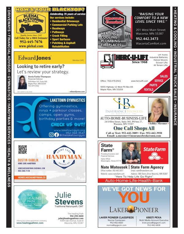 • DRIVEWAYS • FINANCIAL ADVISOR • GYMNASTICS • HANDYMAN SERVICES • HEALTH & WELLNESS
