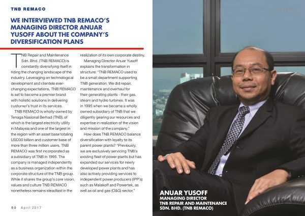 WE INTERVIEWED TNB REMACO ’ S MANAGING DIRECTOR ANUAR YUSOFF ABOUT THE COMPANY ’ S DIVERSIFICATION PLANS