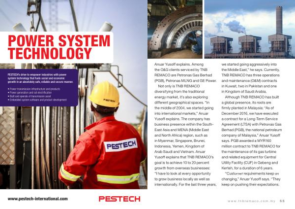 Not only is TNB REMACO diversifying from the traditional energy market , it ’ s also exploring different geographical spaces . “ In the middle of 2004 , we started going into international markets ,” Anuar Yusoff explains . The company has business presence within the South- East Asia and MENA ( Middle East and North Africa ) region , such as in Myanmar , Singapore , Brunei , Indonesia , Yemen , Kingdom of Arab Saudi and Vietnam . Anuar Yusoff explains that TNB REMACO ’ s goal is to achieve 10 to 20 percent growth from overseas businesses : “ I have to look at every opportunity to grow business locally as well as internationally . For the last three years ,