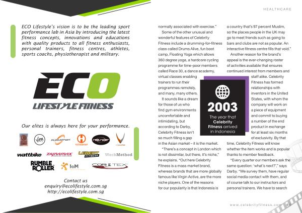 ECO Lifestyle ’ s vision is to be the leading sport performance lab in Asia by introducing the latest fitness concepts , innovations and educations with quality products to all fitness enthusiasts , personal trainers , fitness centres , athletes , sports coachs , physiotherapist and military .