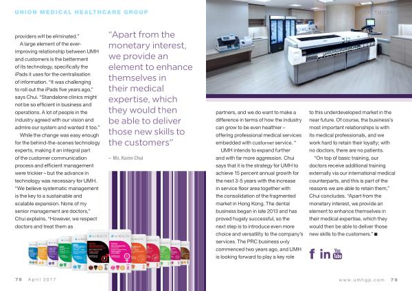While the change was easy enough for the behind-the-scenes technology experts , making it an integral part of the customer communication process and efficient management were trickier – but the advance in technology was necessary for UMH . “ We believe systematic management is the key to a sustainable and scalable expansion . None of my senior management are doctors ,” Chui explains , “ However , we respect doctors and treat them as