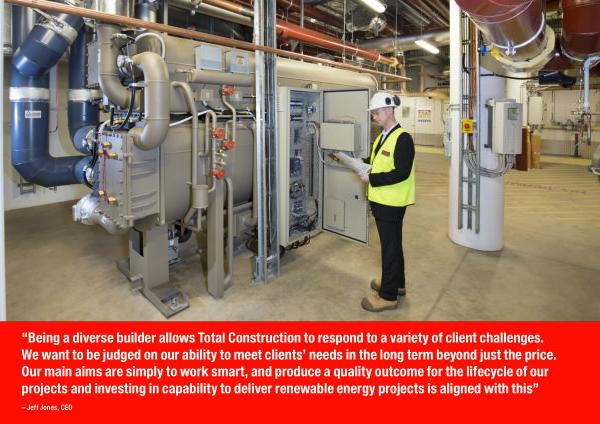 “ Being a diverse builder allows Total Construction We want to be judged on our ability to meet clients Our main aims are simply to work smart , and prod projects and investing in capability to deliver rene