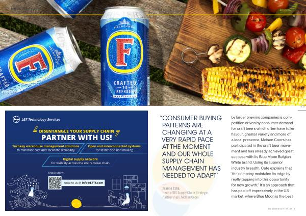 — Jeanne Cate , Head of US Supply Chain Strategic Partnerships , Molson Coors by larger brewing companies is competition driven by consumer demand for craft beers which often have fuller flavour , greater variety and more of a local presence . Molson Coors has participated in the craft beer movement and has already achieved great success with its Blue Moon Belgian White brand . Using its superior industry breadth , Cate explains that “ the company maintains its edge by really tapping into this opportunity for new growth .” It ’ s an approach that has paid off impressively in the US market , where Blue Moon is the best