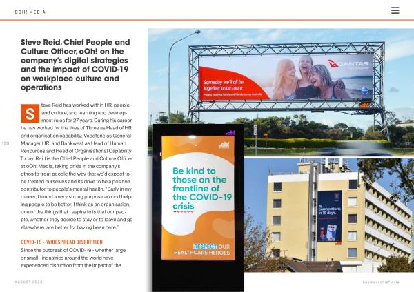 Steve Reid , Chief People and Culture Officer , oOh ! on the company ’ s digital strategies and the impact of COVID-19 on workplace culture and operations