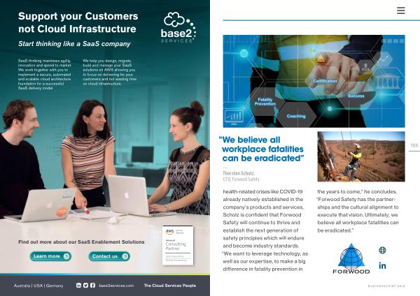 155 health-related crises like COVID-19 already natively established in the company ’ s products and services , Scholz is confident that Forwood Safety will continue to thrive and establish the next generation of safety principles which will endure and become industry standards . “ We want to leverage technology , as well as our expertise , to make a big difference in fatality prevention in the years to come ,” he concludes . “ Forwood Safety has the partnerships and the cultural alignment to execute that vision . Ultimately , we believe all workplace fatalities can be eradicated .” businesschief . asia