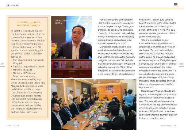 The initiative was led by Royal Group Chairman Neak Oknha Kith Meng in full cooperation with both Ministries . Watson says : “ the Chairman of the company is Cambodian and his mantra is to support the digitalisation of Cambodia with the Royal Government . Cellcard will be the leading 5G digital network and will drive that vision .”